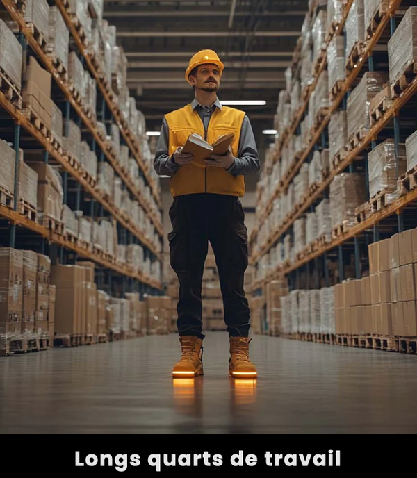 Je passe mes journées sur des sols en béton dans des bottes à bout d'acier. Les stepprs ont une excellente absorption et un excellent soutien des chocs, ce qui réduit l'impact sur mes pieds et mes articulations. Je suis étonné de voir a quel point ils ont aidé. J'en ai parlé à tout le monde au travail.
